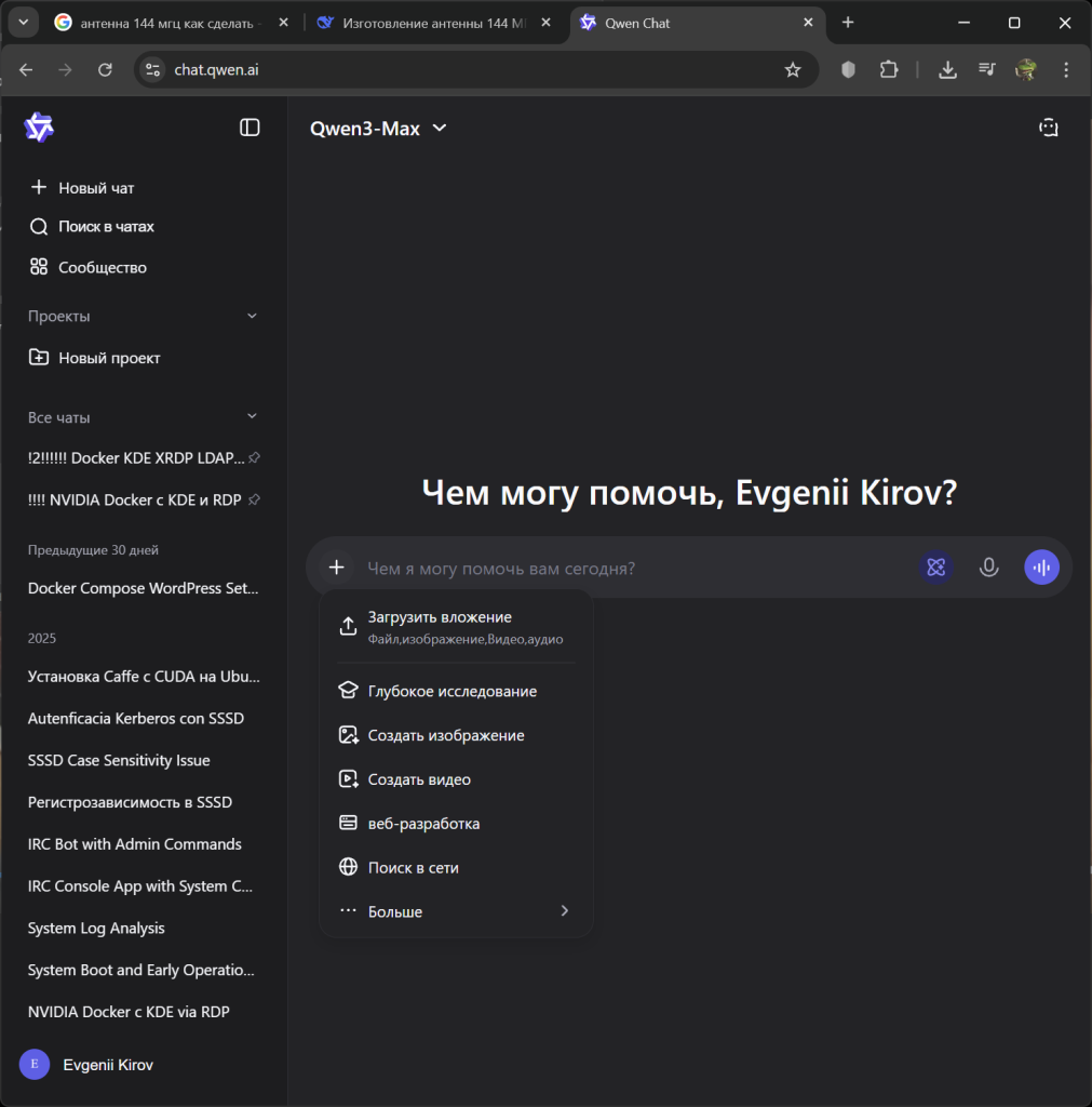 Общий интерфейс чатов с Qwen повторяет интерфейс DeepSeek, по этой причине мы не будем останавливаться на более подробном обзоре.